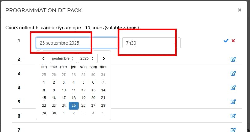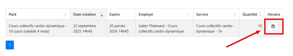 2. Enfin choisissez le jour et l’heure du cours souhaité :